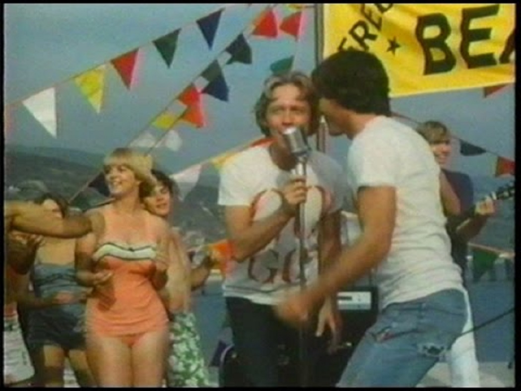 Released just once on VHS by something called Interglobal Home Video, Deadman’s Curve, like hundreds of other entertaining made-for-TV movies from the 1970s—truly the “golden age” of MTVs—has never seen a DVD release. Nor will it any time soon, in all likelihood; in this case I would imagine expensive music releases for Jan and Dean’s songs featured here would negate any projected profit margin an enterprising promoter might envision. Even if I still had a VCR, I don’t think I’d risk $20 or $30 for one of those “vintage” Interglobal cassettes on Ebay or Amazon. So it was off to YouTube, a haven for a surprising number of those ’70s MTVs, where luckily an upload of Deadman’s Curve resides (I’ve become so used to DVD crystal clarity, that at first it was rather like watching a movie through a cloudy goldfish bowl…but you get used to it).