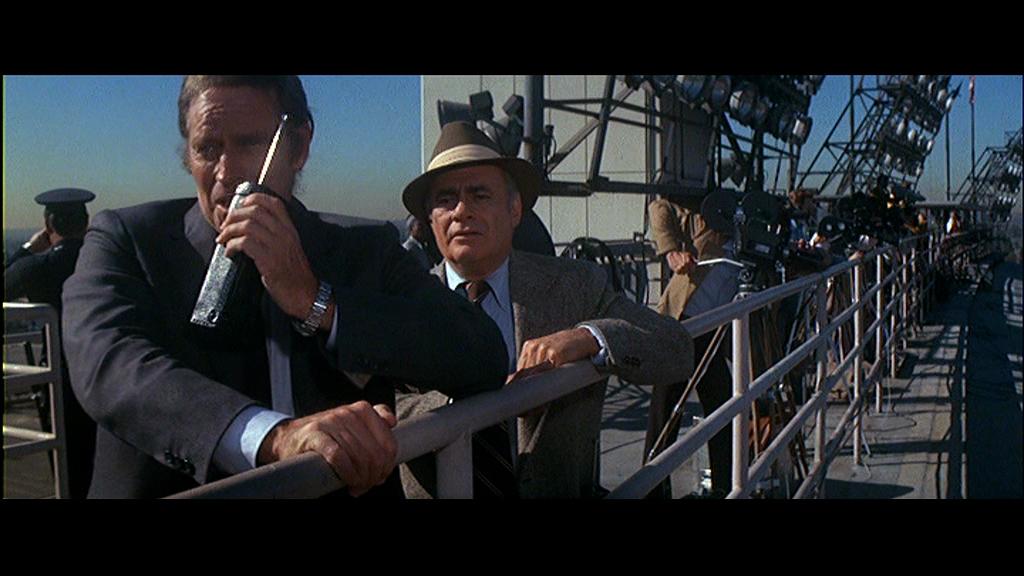 Heston’s renaissance culminated in 1974’s one-two punch of Earthquake (featuring Sensurround’s debut) and Airport ‘75, both of which landed in the year’s Top Ten grossing hits at the U.S. box office. When Heston followed up with Universal’s second Sensurround “event,” the 1976 WWII epic Midway, the studio knew they had a monster hit on their hands even before its release (it turned out to be yet another Heston Top Ten hit at year’s end). So Heston was pressed hard by the studio to sign onto Two-Minute Warning, a project that Universal felt could potentially be an enormous hit, mixing the then-red hot disaster genre with the national pastime: football.