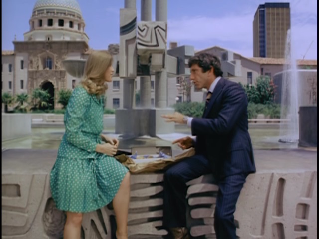 Surprisingly, what I found as interesting as the mystery element was the quietly intense romantic relationship between Tony and Maggie, much of which is owed to Newman’s and Howard’s skills and chemistry together. I’m crazy about Diana Muldaur from The Lawyer…but only when I want a cool, distant, ever-so-slightly sneering actress. Susan Howard is the opposite of that on screen: warm, close, smiling. She plays quite well off gruff, macho Barry Newman. The producers aren’t afraid to show this good-looking couple being physically affectionate with each other (studly 70s macho man Newman often has his shirt off, while beautiful Howard looks good in anything), nor do they shy away from having them verbalizing their feelings. In one episode, Howard bends over at their home site (two locations which bizarrely ping-pong back and forth throughout this season, in a bad continuity error), picking up a brick, and the camera lingers there, cutting to an appreciative Newman stating, “Judging by past performance, I could be arrested for what I’m thinking right now.” It’s a funny moment, but it’s not, surprisingly, leering or dirty, because the producers have so often shown the couple telling each other how much they love each other, in simple words and in gestures. It’s an openly romantic, loving marriage, and we buy it largely because of Howard and Newman.