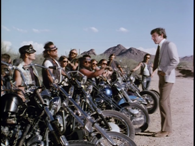 A sweet drive-in-worthy episode, marred only by the too-big, too-hammy, too-“70s Ethnic Clown” performance by normally excellent actor John Colicos. Petrocelli takes on the bikers…and kicks their collective asses. Great scene where Maggie is menaced on the road (I know, I know…) by the bikers. And you betcha that’s Annette O’Toole, looking insane in those white short shorts (a would-be writer once negatively commented on my penchant for detailing all the hot babes in the episodic TV reviews I wrote. Well, Anne Archer, Annette O’Toole, Erica Hagen, Julie Kavner and I often laugh about such petty jealousy when we’re hot-tubbing together…).