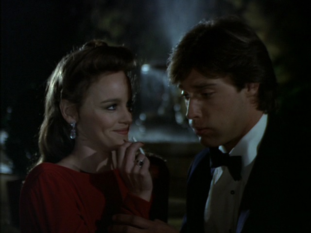 Claudia lays it out about Steven: “People have a right to be what they are,” (as long, apparently, as they agree with the types of people who write for Dynasty, I suspect). If you want to see how times have changed, watch poor Lyndsay subjected to almost-date rape…and watch how her mother explains it away as basically, “boys will be boys.” Blake rails at Fallon’s constant whinging on about how unfair her easy life is (“I went to mafia guys and dictators , while you’re with your beach boys and soccer studs!”). Steven’s invited over to the wholesome Blaisdels for dinner. Meatloaf (yum), and he gets to kiss Claudia on the kitchen floor. The Michael character is “greasy” personified…so I guess kudos to Northrop for pulling it off.