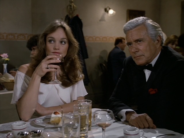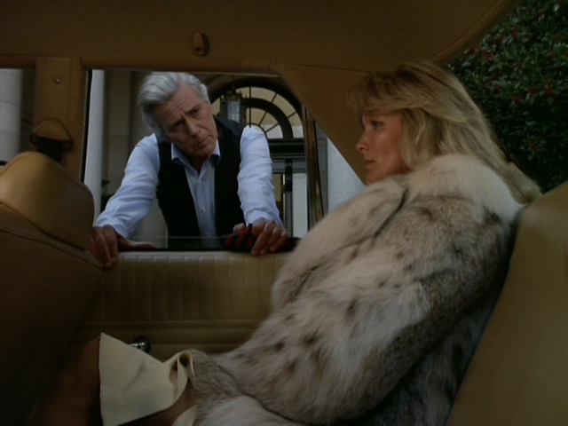 At least Steven keeps his sex partners down to two. His sister Fallon (Pamela Sue Martin) is like a trip to the deli: take a number and get in line, pal. A perverse, amoral little hustler with some serious Daddy issues, Fallon wants Daddy to make love to her to take her seriously as a businesswoman, so until he respects her for who she is, she’s going to hump anything in pants, including Blake’s equally scheming chauffeur, Michael (Wayne Northrup). The only thing Blake wants from Fallon, however, is for her to settle down—preferably in a business/marriage merger with Jeff Colby (John James), the boring, ultra-conservative nephew of Cecil Colby (Lloyd Bochner), the owner of ColbyCo Oil, a far-larger rival of Denver-Carrington. Fallon, however, much prefers the older Cecil, because of his money, his power, his ruthlessness (and not at all because he’s just like dear ‘ol Daddy) while she despises Krystle, who’s poor, and good, and kind…and who gets to sleep with Blake.