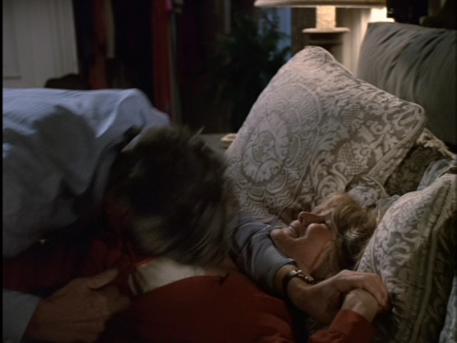 Whatever the producer/writers’ intent with the Steven character was, however, is humorously lost when he immediately starts ping-ponging back and forth between Claudia and Ted. It’s not a matter of whether or not he’s “confused;” we’re not really asked to wonder if he’s gay or not (which of course is avoiding the question…which only further waters down the character). It’s that the producers are trying to use the character as a link between the Blaisdels and the Carringtons and it simply doesn’t work (for instance, we never buy that he would work for Matt and Walter). Everything is so tentative, due in part to the network censorship restrictions of the time, that we can’t get a handle on what the hell Steven is doing…or not doing. His final scene with crying, soon-to-be-murder victim Ted is a perfect example of this: one minute Steven and he are in the depths of a tortured, doomed kiss-off, and the next, they’re both blasé, smiling, and shaking hands like they just ran into each other at Target.