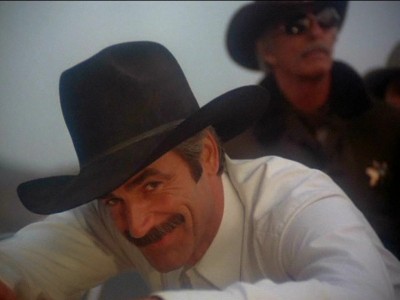 Stunt casting of icon Jane Russell as Jeb’s sister seems promising in a Joan Collins/Dynasty way (I remember all the publicity over it back in ’84), but then inexplicably, she drops out of sight for two episodes only to return for her death scene. Then the producers make the fatal mistake of getting rid of Jeb, effectively eliminating the series’ central crux, its raison d’etre. Without the villainy of Jeb Hollister, what’s the point of Chance’s internal war with his ancestry? Or Roy’s fight for the integrity of The Yellow Rose? We keep waiting for Connors to reappear in the standard jail cell scene where he vows vengeance…but he never comes back. Instead, B.J. and the Bear (sans The Bear) shows up ineffectually as another wastrel Champion; Pat Hingle has his two boring sons steal oil for him, and exploitation god William Smith reenacts Cape Fear with the cast―all to very silly effect. What does any of this have to do with the gritty, believable, sweeping family drama that premiered at the beginning of the 1983-1984 season?