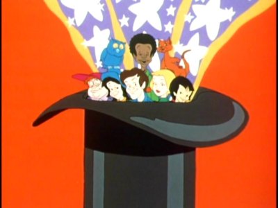Mission: Magic! tells the story of Miss Tickle (voice of Lola Fisher), a hip young school teacher whose class of curious students form The Adventurers’ Club. Vinnie and Socks (voice of Howard Morris), Harvey and Franklin (Lane Scheimer), and Kim and Carol (Erika Scheimer) meet in Miss Tickle’s classroom, where through a magic gramophone machine, rock star Rick Springfield (himself) calls out to them, telling them about their next adventure. Miss Tickle then brings to life her Egyptian cat statue name Tut-Tut (“Oh Tut-Tut, cat of ancient lore, ‘Tis time to draw the magic door.”), and taking a piece of chalk, draws a magic door on the chalkboard, which immediately transports the class to a magic land where Rick Springfield awaits. There, the gang gets into many nonsensical adventures, featuring their enemy Mondran, as well as Dr. Manta, Doctor Daguerreotype, and The Land of Backwards. During the Adventurers‘ mission, Rick always has time for a rocking song, before the group is transported back to class, where clueless Principal Samuels (Howard Morris) usually awaits.
