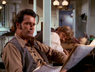Where Did Everybody Go? finds Nichols really picking up steam…even though I think it might have been only the second or third episode shot! Hampton is “back” one more time, while Nichols establishes his jail down in the hotel box room (which has been featured in “earlier” episodes). Jesse, Bill, and Alan Vint make their mark as the juvenile, petty Springer Brothers, causing havoc in the town while Nichols calmly writes down all their offenses. Nichols gets carefree slut Nira Barab at the end, along with half the fines he let the Springer Bros. rack up (Margolin telling Garner that window ‘pane’ is spelled, “P-A-I-N,” is priceless, with Beck getting into the act, too, mumbling weirdly at one point like Popeye in this very funny outing). Kidder shines again in The Marrying Fool, bringing a nice, modern (and sexy) vibe to her bigamy-accepting Ruthie when she hooks up with many-times married Tom Skerritt (always interesting). By this point, it’s clear that Garner and the producers are going to Margolin each episode for some choice comedy bits; his checker gamer in this episode is memorable (“My eyes!” he screams).