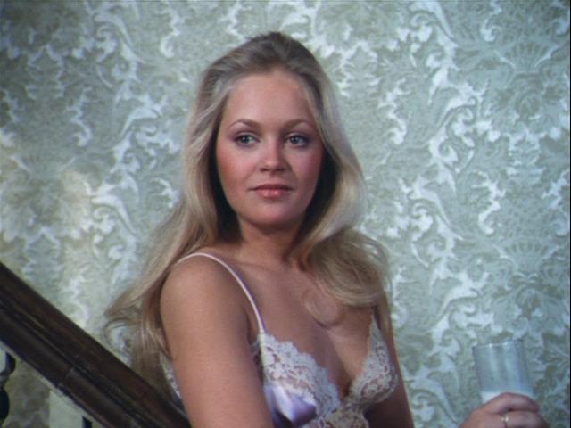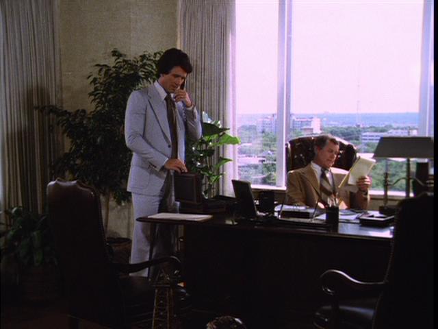 A great, seminal (sorry) episode for J.R.. He discovers Sue Ellen is screwing Cliff, and is devastated…and so he moves quickly to utterly destroy Cliff, and control, absolutely, Sue Ellen…even if it destroys her. This is the love/power triangle dynamic that will define Dallas, perhaps more than any other subplot. Cliff has given himself over to powerful interests, to advance his career…but he’s no match for J.R. (as his weakling father, Digger, was no match for Jock). So he uses Sue Ellen to get back at J.R., as she does the same. And of course, the paternity of baby John Ross Ewing, Jr., will be in question for some time (J.R. will grudgingly raise “that little bastard,” but he ain’t changin’ his ways). That also includes checking out his wife’s sister’s ass constantly (Colleen Camp stars here as Kristin Shepherd). The Shepherds are amusingly hard and venal—a good compliment to J.R. (Sue Ellen’s mom basically snorts when her daughter laments J.R.’s cheating). J.R.’s destruction of Cliff—successfully backing him down from Sue Ellen or no job in the Bureau of Land Management—is of course, short-lived.