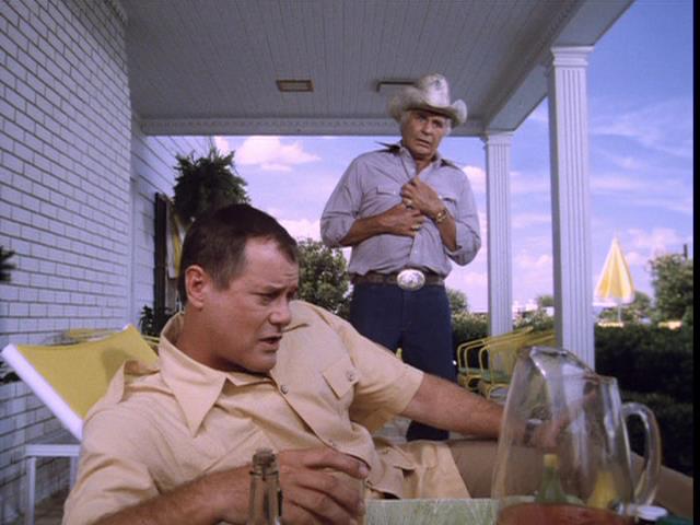 Soooo…how many “outsider with a secret connection to the Ewings” episodes are we going to have this season? This time, it’s Miss Ellie’s long-thought dead brother, Garrison (Gene Evans, a grating, obnoxious, hambone actor I could never abide…). Jock, (rightly) thinking him a weakling for leaving Miss Ellie because he didn’t get along with his father (shades of Gary Ewing), goes apesh** when Miss Ellie decides to give the ranch to Garrison (is Southfork still in her name?). The episode really cheats on how the issue is resolved: Jock, like a boss, says to Miss Ellie, “You’re overstepping your place….I’m still head of this house with or without your permission!”, and Miss Ellie is equally adamant that Southfork is hers to keep or give away. I guess Jock backs down…but they don’t show it (the producers probably couldn’t figure out how to do it without weakening the Jock character). I guess everything is jake once Garrison reveals he’s dying—what room at Southfork did they stick him in to die…because he’s never seen or mentioned again, at least this season (I guess the maid took care of it).