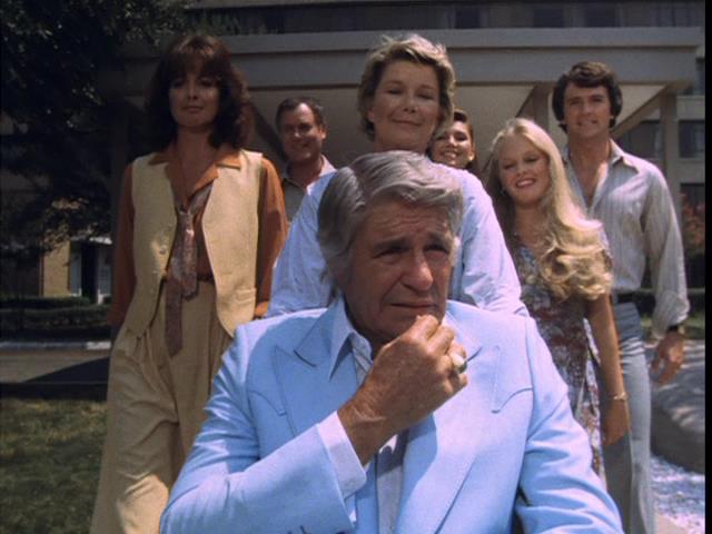 Some great opening shots of cowboy actor Jim Davis, tear-assing around Southfork, hell-bent for leather. Too bad all that exertion—along with stress over J.R.’s business practices—leads to a heart attack (I don’t care what anybody says: that scene should have been re-staged and shot again. It’s not shocking, as it should be…it’s unintentionally hilarious, with Davis bugging his eyes out and clutching his chest like Fred Sanford). The bigger laugh came when Jock mildly wonders about his eldest, “I get the feelin’ sometimes…he’s not really telling me everything.” You think? More series-long set-up of Bobby feeling inferior as a businessman, and that he has to compete with J.R. at Ewing Oil. And of course, we get more info on J.R.’s notorious “red file,” which includes Jock’s will (or is it?)…giving J.R. drilling rights to Southfork’s Section 40 (mamma’s not gonna like that). Very cool epic shot of the proud, united, messed-up Ewing family walking out of the hospital behind Jock’s wheelchair.