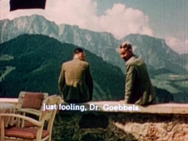 After the initial color surprise of seeing Hitler and his cronies yukking it up on a sunny Bavarian Sunday, Mora and editor Andrew Patterson go beyond the mere novelty of the footage to illustrate the contrasts between staged reality in Nazified Germany, and real “reality.” We marvel, with black humor, at Reich Minister of Propaganda Joseph Goebbels’ painfully evident propaganda chutzpa, crafting a sham “new” Germany in those obviously staged direct cinema knock-off scenes. Ironically, though, the real home movies of Eva Braun come off as far more disquieting and disturbing than Goebbels’ efforts, precisely because they’re clearly not staged (even though the participants sometimes play up to the camera, they do so in an obvious, knowing way).