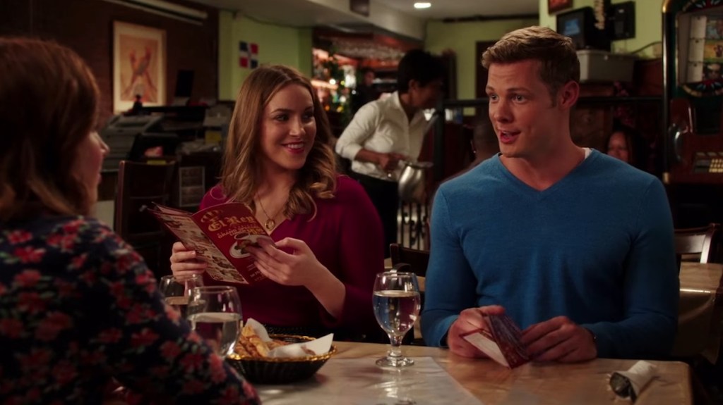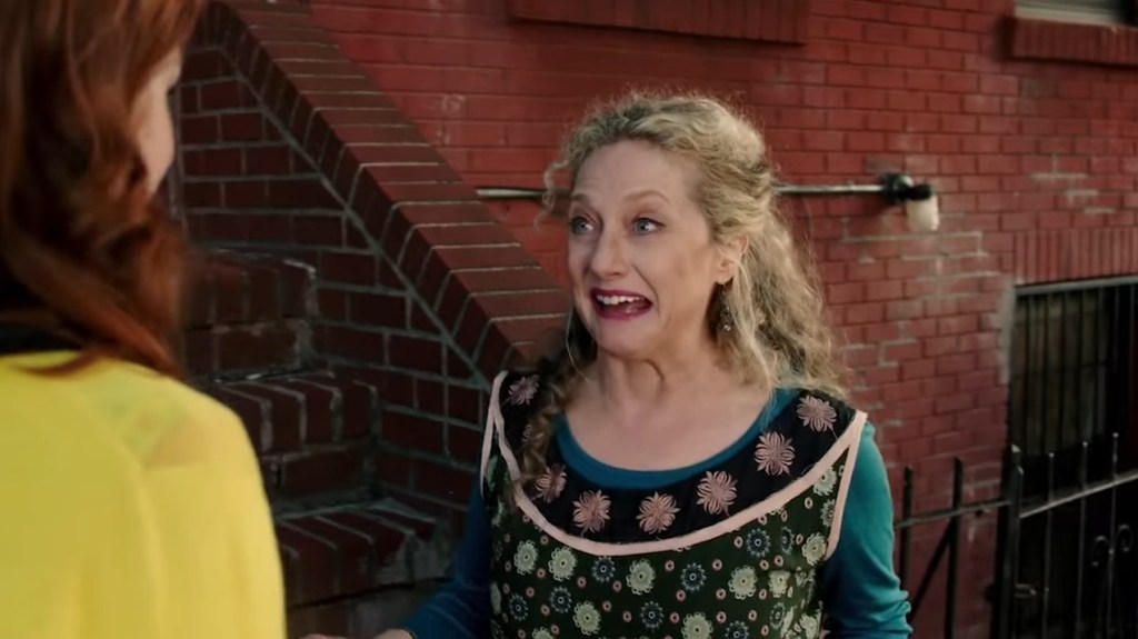 And speaking of those other three “mole women,” they turn up from time to time, too: Cyndee (Sara Chase), Kimmy’s naive best friend who continues her naivete in the real world (she reunites with her middle school crush only to find that he may be gay, even if she winds up outsmarting everyone in the end); Gretchen (Lauren Adams), who’s such a willing member of the cult that she still believes the Reverend was trying to save them, even after being rescued; and Donna (Sol Miranda), a middle-aged Latina woman who spent her 15 years in the bunker pretending to not understand English, and who later uses the Mole Women name to hawk her tasty new “mole sauce.”