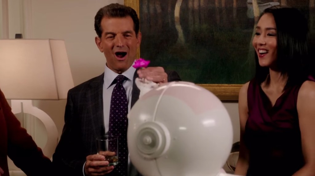 We finally see Jacqueline’s husband, Julian (Mark Harelik), who throws a surprise cocktail party, which Jacqueline enlists Kimmy to help embarrass him over his infidelity overseas. But when it turns out the hot Japanese businesswoman may not be screwing Julian after all, things go to absurdist hell.