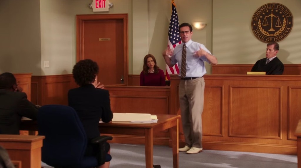 Titus attempts watching the trial unfold online at the library, cringing at the incompetence of the the prosecuting attorneys (series creator Tina Fey and Jerry Minor) who are no match for the “godly” Reverend’s biblical representation of himself.