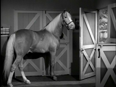 You can analyze it all you want, but in the end, funny is funny, and almost every well-written line “Rocky” Lane gets off, is a scream. Trying to pick a favorite is next-to-impossible, but runner-ups include Ed very seriously stating, “I also listen in at windows,” when Wilbur catches him eavesdropping again (didn’t lines like that make you think the writers had a whole other world—a much more mature world—imagined up for Mr. Ed during his off-screen time?). “This is brutal,” is a great one when Ed sees a fumbling handyman continue to screw up at the Posts’ home. But if I had to choose, it would have to be from Ed the Lover, when Wilbur asks Ed if he’d like to be a television star. Ed, incredulous, drawls back, “Television? Not me. I know Trigger—he’s a very mixed-up horse.” Classic on every level. Mister Ed may be damned with faint praise by some as a supremely silly show which still managed to be amusing at times, but it’s one of my favorite sitcoms: bright, clever, witty, and expertly staged and performed…by humans and animal alike.