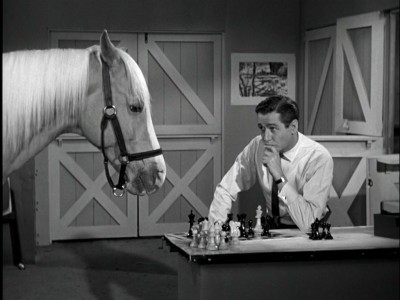 I’ve never understood why Mister Ed, as well as other series from the later, so-called “fantasy period” of middle-60s network television programming, has garnered only grudging respect at times from self-serious critics and historians. Is it because the central plot element―a talking horse―is just too ridiculous to be taken seriously? Stretching that point a bit, I don’t see why that should be, when logic-straining fantasies like Harry Potter and Star Wars are regarded with almost Talmudic reverence today.