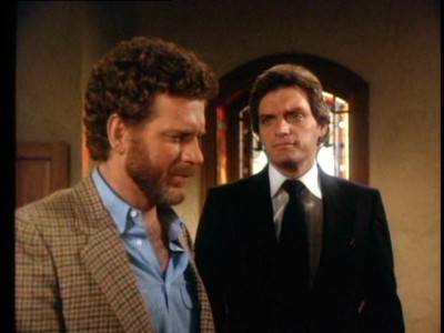 But then, increasing ridiculousness along the lines of Dynasty works well within the Falcon Crest mold because the scripters, as well as the directors and the actors, are always careful (at least for this second season) to keep things relatively straight-faced. Yes, it’s silly to see Cole pick up the murder weapon over Agretti’s body (and helpfully wipe blood on his own shirt), or to see Lance and Cole have a kung fu fight amid the barrels of wine, or to see the lush, full Ana Alicia panting and heaving like a bitch in heat when she’s making out with Richard, before letting Lance force himself on her…much to her delight (from face slapping to her groans of sexual pleasure as she hisses, “I hate you!” before he responds, “You’re incredible!”—this is the kind of stuff we live for here at Drunk TV). All silly…but it all works because Falcon Crest isn’t ashamed to be obvious about its intentions.