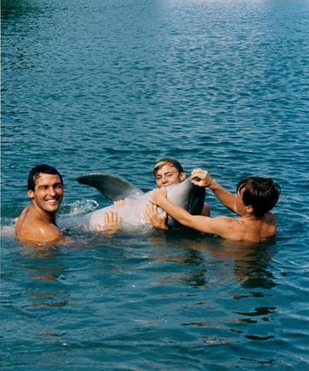 Flipper the television series was inspired by two successful feature motion pictures: Flipper, starring Chuck Connors and Luke Halpin (released in August of 1963), and Flipper’s New Adventure, starring Brian Kelly and Luke Halpin (released in June of 1964). The producer of both movies, as well as the series, was Ivan Tors, who had hit paydirt with the suspenseful syndicated TV hit, Sea Hunt, starring Lloyd Bridges, so he was more than familiar with the complexities and difficulties of shooting on the water.