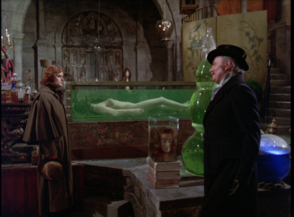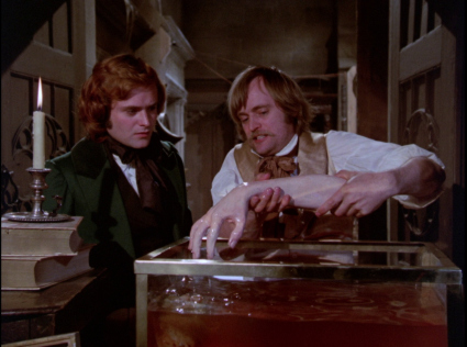 On the eve of the creature’s rebirth, Clerval discovers that the process has not been perfected. Henry, fatally stricken with an unnamed illness, tries to send a message to Victor that the process is flawed, but death takes him before he can succeed. Victor, failing to decipher Henry’s message, decides that Henry’s brain is the perfect, final puzzle piece for his creation. In a departure from previous movies (but true to the novel), the Creature (Michael Sarrazin, quite affecting here) comes to life in full Byronic beauty.