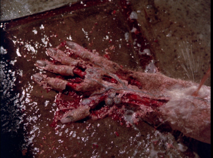 And while the action may seem tame by today’s standards, there’s some impressive moments of special effects, particularly the disembodied, crawling arm, and Prima’s reincarnation scene, complete with her decapitated nude body—Seymour insists it’s a body double, goddamit—in a giant vat of colored water and Fizzies (I suspect, due to some choppy editing, that some extra shots of gore were filmed for international audiences, but excised from the American television showing…particularly a notorious scene with Jane Seymour).
