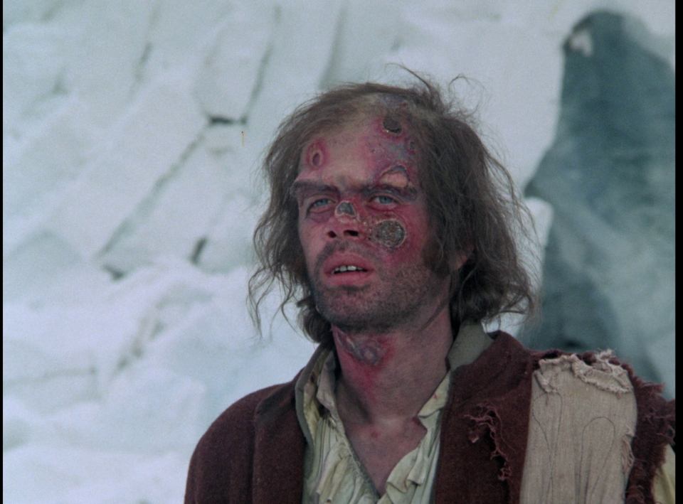 At this point, the shadowy figure of Polidori (James Mason, brilliant as usual, in a role created specifically for this version) takes the place of the departed Henry. Seeking vengeance against Henry (Polidori knows the Creature has his brain), who worked with Polidori and who, according to Polidori, stole his secrets of resurrecting the dead, Polidori enlists the aid of the Creature to help blackmail newly married Victor, into helping create his own female monster, Prima (Jane Seymour). Events go disastrously wrong, and eventually, Victor and the Creature must work out their fate at the top of the globe.