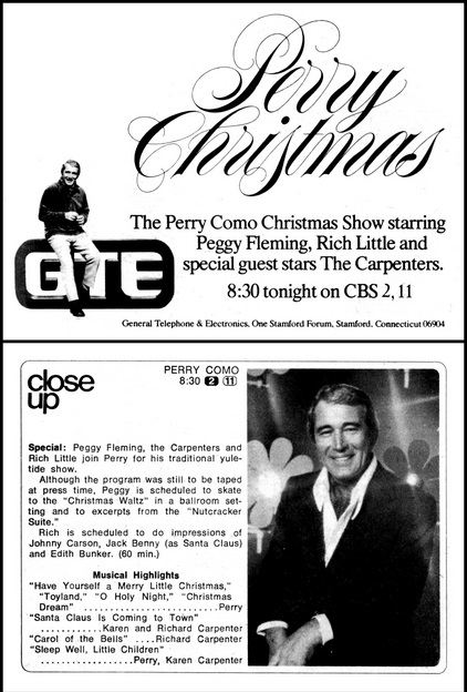 ‘Perry Como’s Christmas Show’ (1974): The Carpenters join Como for a look back on a world long gone