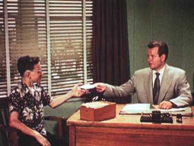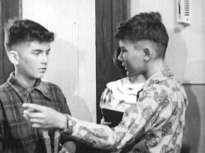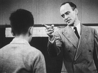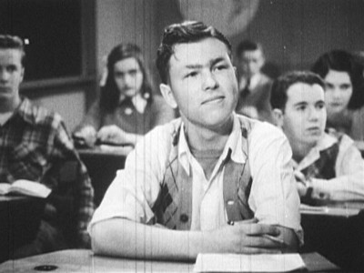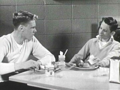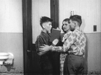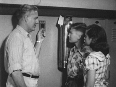 More straight-line set-ups than in 20 other social guidance films, Mike Makes His Mark still manages to effectively get across its message of coordinated outreach to troubled teens by not portraying the transformation as so easily accomplished. Mike immediately gets our sympathy when he tells the handsy beat cop to keep his meathooks offa him, and his status as “dreamy leather boy trouble” is firmly established when he starts tapping out some jazzy beat at a boring class assembly. But after the unintentional laughs die down (Miss Dewey exclaims that “Charley is as big as any man,”…oh Miss Dewey!), you really start to pull for Mike, especially after seeing his less-than-encouraging household (Dad’s not too keen on Mike excelling at anything, is he?). The sincerity of the piece seems slightly silly―but that’s only because of the too-earnest, too-square presentation by the performers. A better-than-average educational short that benefits from its longer run time.