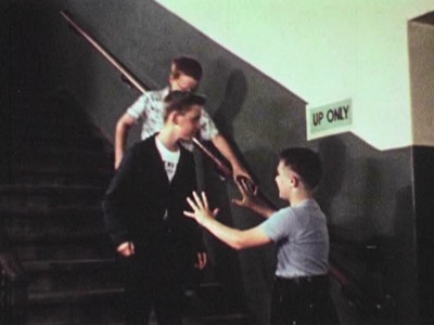 A classic educational short that they were still showing in classrooms when I was growing up in the early 1970s. Scripted by social guidance pro Margaret Travis, Manners in School is probably one of the more recognizable examples from the genre (wasn’t it featured on MST3K once or twice?), with its bizarre battle between mean little snot Larry and his hectoring, insulting antagonist, Chalky. Was this Larry the inspiration for the mean little puppet on Pee Wee’s Playhouse, with his cocky, Bowery Boys nose-thumbing? It’s impossible not to laugh at genuinely funny little malcontent Larry and his barely submerged, violent rage (his reaction shots when he’s messing with his teacher are priceless), while no doubt more than a few “good girls” in class who watched this short dreamed of lowering their self-esteem by catching an adorable, freckled-faced “bad boy” like Larry. A good example of a social guidance film’s execution obscuring the intended message…thankfully.