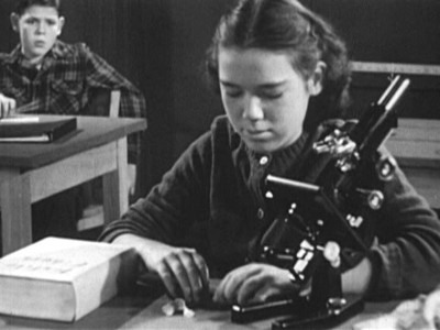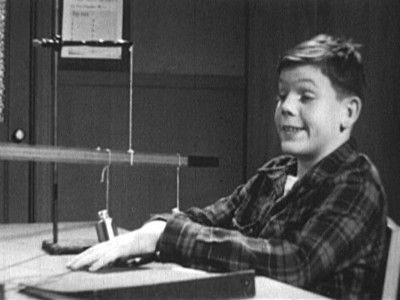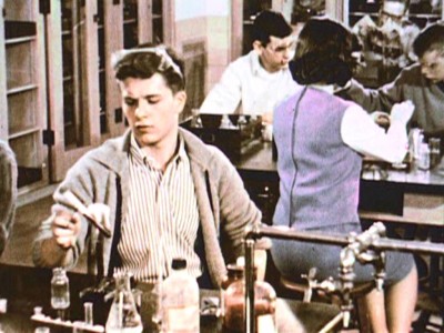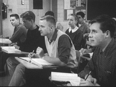 “Carl realizes that he’s barely keeping up with his classmates, who have not only finished their classwork, but are now working on next week’s assignments. Surprisingly, there are no teachers around to keep the kids on track―making them bone up for the now-mandatory End of Grade testing. Most of the shots outside the school lab are outtakes from other Coronet films. Look carefully and you’ll see Dick York at a dance, from the film Shy Guy.”