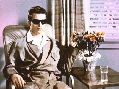 Shot at the beautiful (and now sadly bulldozed) Art Deco Mumford High School in Detroit (in typical social guidance spartan style, no one bothers to take just one pretty picture of the actual school used here), Take Your Choice is one of those giddily enjoyable “calamity” educational shorts that teases the viewer with the suspenseful pleasure of a horrible inevitableness: when will cocky Jeff finally blind himself? Too bad this Jam Handy effort cops out and lets Jeff off sans maiming―he’s actually fine; they just trick us into thinking he messed up royally. This is another example of where the filmmakers make the mistake of glamorizing the offender―who doesn’t want to be like smooth charmer/jerk-off Jeff?―and romanticizing his plight (check out that Ross Hunter/Magnificent Obsession-worthy shot of Jeff, sartorially resplendent in his early ’60s blindwear: perfectly-coiffed Princeton cut, black wrap-around Ray-Bans®, silky grey satin robe set off against crisply-pressed pajamas, and handsomely tortured face. How many chicks is he going to get cutting that tragic figure? Plenty).