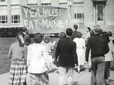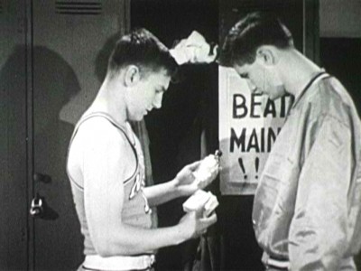 The anti-Slap Shot. Denied his right to exact vengeance on the punks who started the whole mess, Joe eventually learns that stink bombs in the opponents’ locker room crosses some invisible, incomprehensible line between school spirit and bad sportsmanship (today, it would be between school spirit and a felony). A big tease, School Spirit and Sportsmanship may possibly work as a weak refresher course on being ethically and morally responsible students, but as ironic laugh-getter for today’s smarmy viewer, it’s a whiff shot: the filmmakers build everything up to the point where we really need, desperately need, to see that stink bomb go off…and then they chicken out. Tepid.