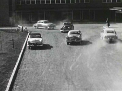 “This film addresses the epidemic of auto crashes and fatalities due to teenagers racing to and from high school for lunch. After a near miss in the parking lot, “Goody goody boy” Jerry takes on his reckless classmates via the student council. While the film was made by adults to address the problem, the filmmakers took great pains to make their teenage audience feel that it is ultimately their problem, and encourages them to solve it themselves.”