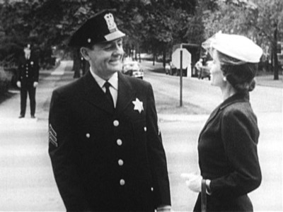 Fairly straightforward entry here, made amusing by the complete lack of protection prospective Mrs. Roberts is going to get when she jumps out into traffic for the first time. This must have been before there were any laws on the books about mandatory stopping for crossing guards, because the Car 54, Where Are You? flatfoot tells her straight: you ain’t no cop, so good luck, and remember to bob and weave. Lots of print shrinkage and gate jumping here, which I love.