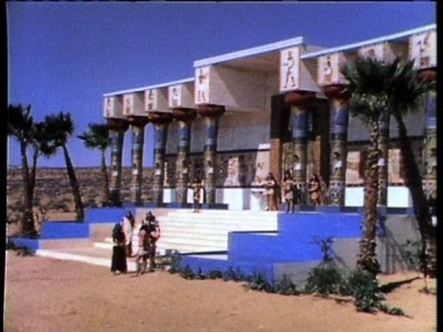 Alas, their bitchy, hilarious parts are brief, and we’re stuck with the likes of brawny Joe Campanella, pulling a surprisingly credible British (?) accent as Pharaoh (he’s actually not half-bad), and Frank Gorshin unattractively, nastily grimacing and shouting like he always did in anything other than Batman (he had to know he didn’t deserve the crappy career he wound up with). The worst, though, is Marley, who delivers his lines in the same hoarse, uninflected, declaratory manner, regardless of the line’s import, each and every time (at my local deli I’ve heard, “I’ll have a pastrami on marble rye!” put over with more feeling than his remarkably colorless, “Let my people go.” And watch him tap-tapping his staff at Pharaoh’s door. Positively feeble).