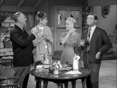 That had to be jarring for loyal fans of the show back in 1963, but networks routinely ignored such continuity gaps, believing (falsely) that audiences simply weren’t that “tuned in” to notice such things. I doubt Albertson was ever intended as a permanent replacement for Keating; the idea of a grown brother and sister living next to the Posts, complaining to each other like a married couple, wouldn’t have worked for long, but it’s too bad more room couldn’t have been made for Albertson, who has a nice, scammy spryness to his comedy here.