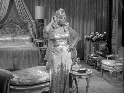 But clearly the stand-out episode this season has to be the utterly bizarre Mae West Meets Mister Ed, one of the single strangest half-hours in network television history. An absolutely unfathomable exercise in crypto-camp (hate that word…but it fits here), Mae West Meets Mister Ed starts out hilariously, seriously weird…only to get more off-the-wall as it goes along. Mae West, acting exactly like a bad Mae West drag queen impersonator, puts one hand on her bumping hip and the other patting up her hair, and throws out lines like, “Believe it or not, I’ve got to see a man about a barn,” and “I even choke up when I see a Good Humor® Man,” a positively filthy line―thank god―concerning Mae’s love of men in uniform.