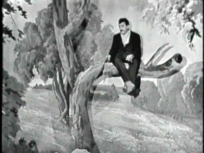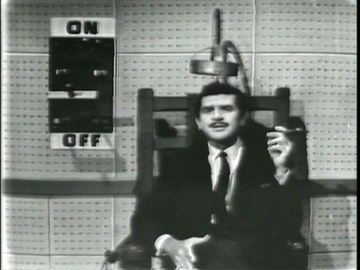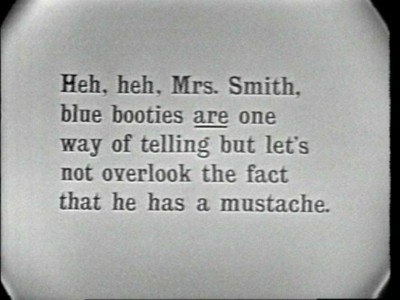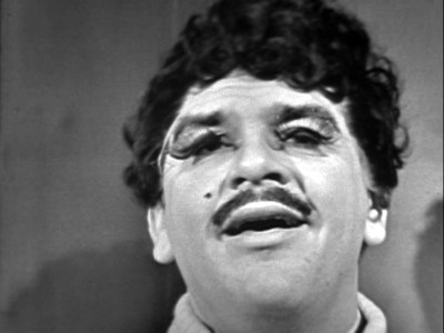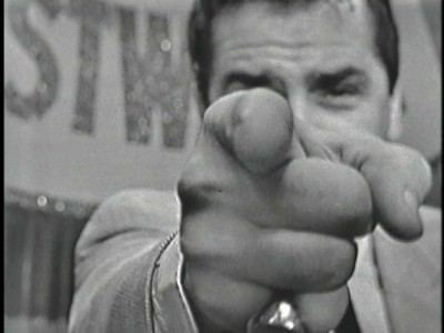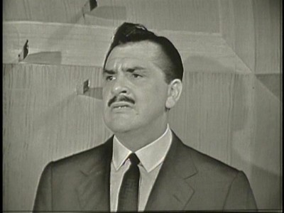 However, I found this episode of Take a Good Look absolutely hilarious, not only for the devilishly obscure “clues” that Kovacs filmed for his guests (much like What’s My Line?, the panel had to guess who someone was; here, they were given film clips shot by Kovacs to lead them along), all of them beautifully obtuse and indecipherable, but also for Kovacs’ complete disregard for the game itself. The panel here―Edie Adams, of course, Jack Carson, and Cesar Romero―never get anywhere near guessing who the person is, as Kovacs has their timer bells ringing in faster and faster until the whole enterprise is finally taken for what it is: an elaborate spoof of the panel shows on the air at that time. As well, it’s terrific to see Kovacs so loose and informal with his guests and panel, laughing and ad-libbing without a care since his “clue” spots are already in the can. This is the Kovacs I find the most fun.