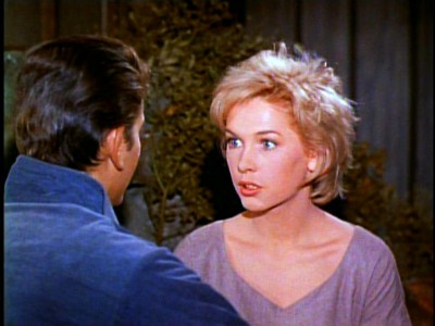 Several times in the story, everyone urges Ben to have the dangerous boy locked up, but Ben refuses; he doesn’t want the boy, well played by David Macklin, to believe that force and violence are the answers to a deeply troubled young man’s problems―a rejection of violence on principle that wasn’t as novel and unique in television westerns as some critics (who haven’t actually watched these old shows) would have you believe. Other good examples of this “violence-only-as-a-last-resort” creed in Bonanza (a creed that certainly sets them apart as “special” in a land of quick draws and cheap death) comes in Badge Without Honor, where Dan Duryea’s perverted love of efficient killing can’t win out over the Cartwrights’ reluctant use of force as a cleansing agent of justice, and in The Hopefuls, where pacifist Patricia Donahue can’t forgive Adam’s necessary use of violence―even though she knows he had no other choice―thereby scuttling their romance.