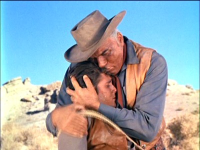 However, in episode after episode, the Cartwrights’ moral superiority―carefully couched in populist humility―is shown to be far stronger than their corporeal desires, as well as being the only stabilizing force in this untamed frontier, a civilizing force for good that’s remarkably unselfish when one tallies up the Cartwrights’ forgiving nature in the face of wrongdoing. A good example of this is The Blood Line, written by William Raynor and Myles Wilder, where Ben, after killing a drunken rogue in self defense when the man complains about the “high and mighty” Cartwrights, takes in the dead man’s son and tries to teach him that violence isn’t the answer to life’s tribulations…even though the boy continually vows revenge on Ben’s head, and escapes time and again.