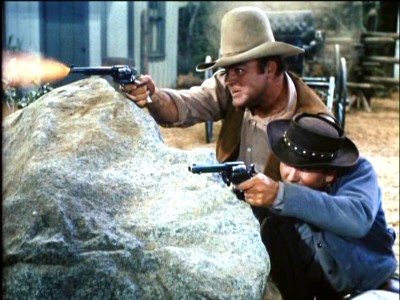 Altman, however, didn’t direct my favorite episode this season―The Infernal Machine―written by Ward Hawkins. Veteran helmer William Witney (another unaware, unasked contributor to Tarantino’s dubious skill set) helmed this remarkable outing, a brilliantly realized episode that achieves remarkable switches in tone―from broad slapstick to delicate pathos to an almost perverse black humor―from the inspired cast. Witney’s big wrap-up, an homage to silent movie slapstick when Hoss fights the dastardly villains, is an astonishing flash of self-reflexive choreography that stands out even more against the playful, mocking tone of the piece―a wholly integrated work on a level you don’t often see, even during those days of everyday remarkable television.