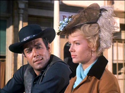 Envy and avarice for what the Cartwrights have carved out for themselves also drives many supporting characters’ motivations this season. The best example, The Bride, written by Richard Newman, finds a local sheriff, played by John McIntire, engineering a nifty little scam with Adam West and Suzanne Lloyd to steal away the Ponderosa by setting up Ben for murder. Arriving at the Ponderosa after claiming to have been married to a phony “Ben Cartwright,” Lloyd marvels at the sight of the ranch spread out before her: “Must be wonderful to live on a place like the Ponderosa. A place almost as big as an entire state,” she offers, to which the proud-but-humble humanist Ben replies, “Well, Miss Jennifer, it’s not what a man has that’s important. It’s how he got it, and what he does with it that really counts.” Responding in the best class-warfare manner, Lloyd tentatively parries with, “But how does one man get so much?” to which proud Little Joe responds, in the best―and now sadly flagging―American tradition, “By working till his back’s near broke, like our Pa did.”