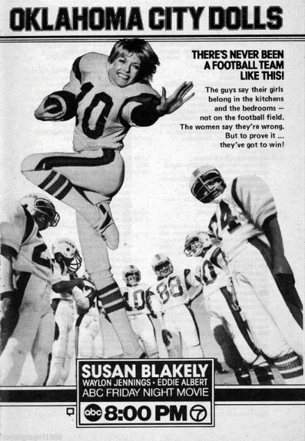 The Oklahoma City Dolls‘ wavering tone, though, isn’t all due to network amelioration. Screenwriter Ann Beckett (mostly TV offerings, including Rich Man, Poor Man: Book II) jumps somewhat uneasily between the serious subtext of her story―Susan Blakely’s downbeat life, hampered by the current societal and gender expectations―and the more broadly comedic elements involved in Blakely’s fight against factory management, in addition to all the football sequences.