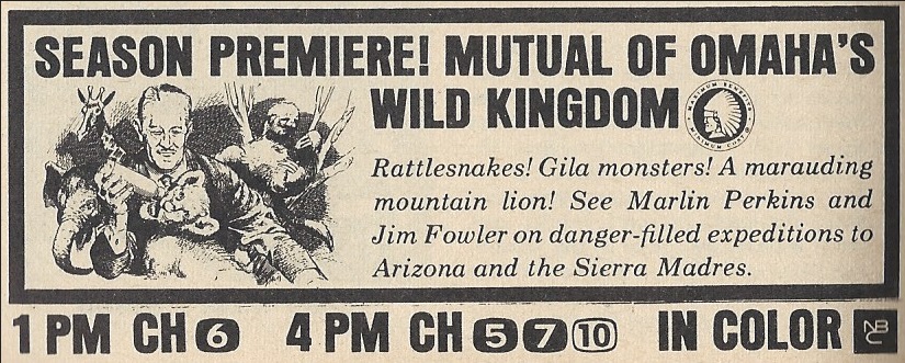 Wild Kingdom premiered on the NBC network on January 6, 1963. It was an immediate hit, and viewership levels grew over the next five years to such an extent that NBC felt the show would be better suited to prime time. Premiering in January, 1968 (as a mid-season replacement), Wild Kingdom‘s new 7:00P.M. time slot was a perfect lead-in for Walt Disney’s Wonderful World of Color. NBC let Wild Kingdom go at the end of 1971, but it soon became a phenomenon in first-run syndication, returning to its Sunday afternoon timeslot in most markets.