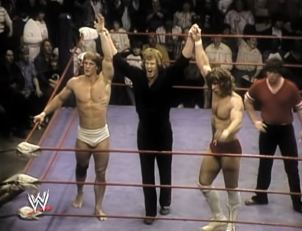 Beginning in the early 80s, Jack would champion the syndication of his videotaped local matches, in essence breaking the long tradition of regionalism that dominated professional wrestling in America, and creating the template for what we see now in the WWE. Innovations such as multi-camera set-ups, with hand-held, lightweight video cameras used to get right into the ring, creating terrific audience identification with the wrestlers, rock ‘n’ roll music intros for the wrestlers, and elaborate storylines and feuds for the various “heels” and “faces” (heroes), quickly changed the direction of the industry, and created a groundswell for the “sport” in the 1980s and 1990s. And at the center of Jack’s growing promotion were his wrestling sons.