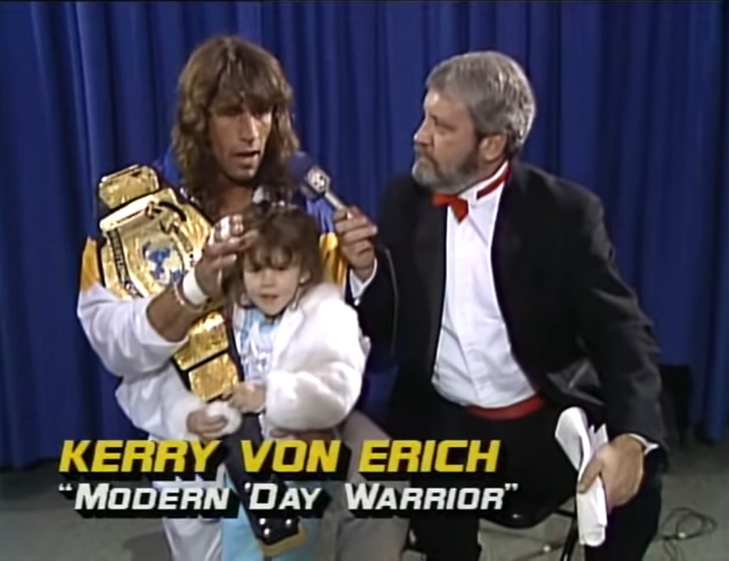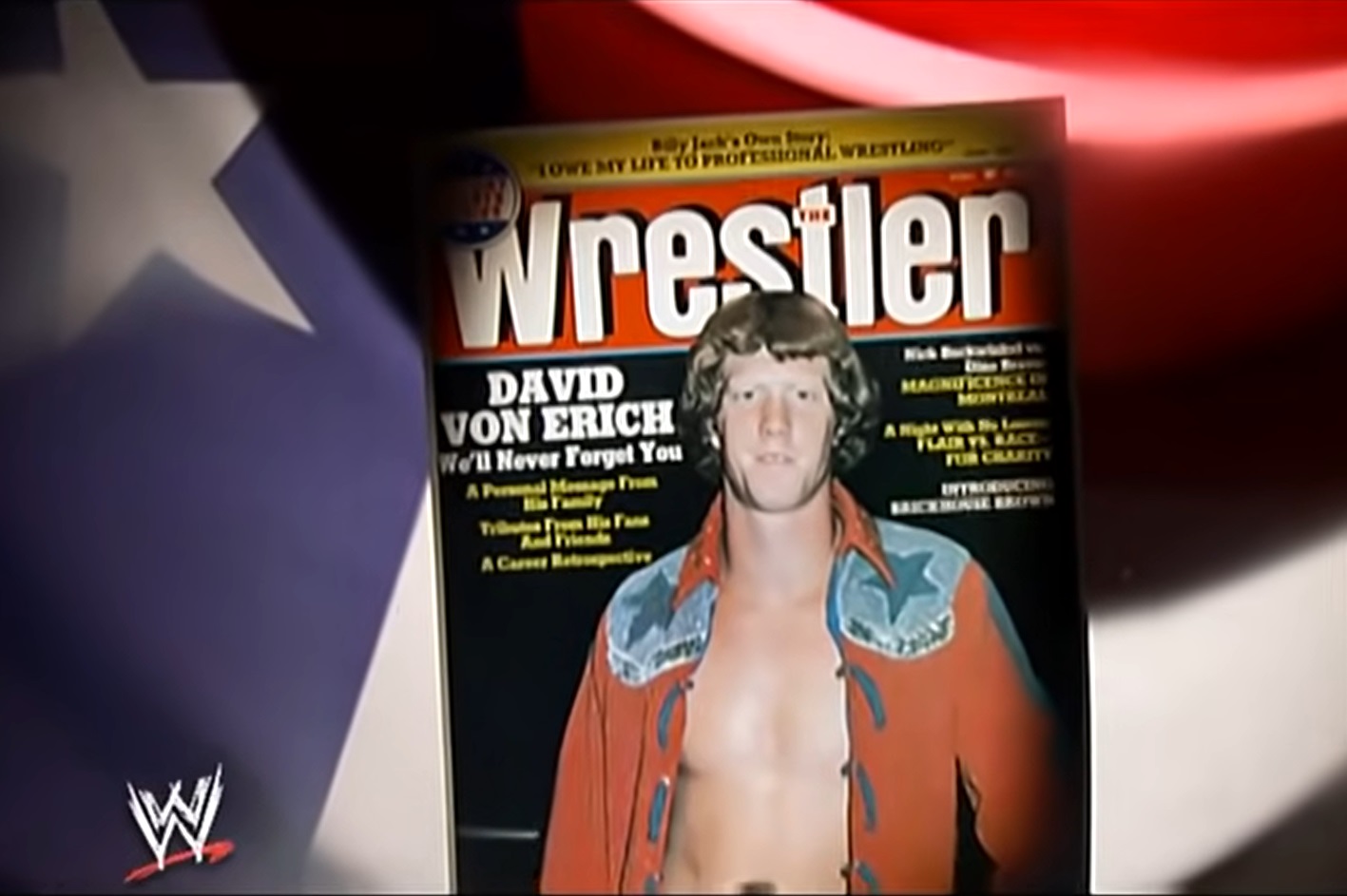 But it all began to crumble when, one by one, all of the boys died (save eldest brother and survivor Kevin), either by suspicious circumstances or suicide. David “The Yellow Rose of Texas” Von Erich died in Japan in 1984, either from drugs or from a heart attack brought on by acute enteritis. Mike Von Erich, who never really wanted to wrestle, never recovered from a terrible bout with Toxic shock syndrome, and committed suicide in 1987. Chris Von Erich, unable to match the athleticism and success of his brothers, committed suicide in 1991. And the most famous of the Von Erich brothers, Kerry “The Texas Tornado” Von Erich, having lost a foot in a motorcycle accident and getting arrested for drugs and facing a lengthy jail sentence, committed suicide by shooting himself in 1993.