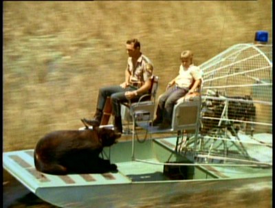 The Ocheechokee area of the wild, untamed Florida Everglades. Neat-as-a-pin game warden Tom Wedloe (Dennis Weaver), firm of jaw and starched of collar, has a full plate, tear-assing around the unforgiving swamp in his sweet, sweet airboat and Jeep, hunting down assorted n’er-do-wells like poachers, moonshiners, and escaped convicts, while futilely attempting to study the migration patterns of the multifarious critters and varmints that populate his beautiful, savage land.