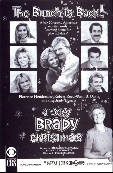Aside from the original show itself, which ran on ABC from 1969 to 1974 (and which continues to generate millions for everyone involved except the actors who actually brought the series to life), there have been more iterations of its core format than just about any other sitcom in American TV history (Star Trek, in the sci-fi genre, probably beats it), from failed backdoor pilots and an animated series, to a variety series, TV movies, a spin-off sitcom, a dramatic spin-off, big screen parodies, books, records, theatrical spoofs and musicals, and of course, a Christmas TV movie reunion: 1988’s A Very Brady Christmas.