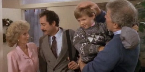 Perhaps what’s most distressing about A Very Brady Christmas is how ill-used are the adult Brady kids, whether through poor scripting, or poor performing…or both. Headliner McCormick–a lovely actress who had real star quality in the original series–is a cipher here, tasked with doing…nothing much at all, as Mike solves Wally’s problems (did they back off on her character because they didn’t want a repeat of McCormick’s druggy behavior on The Brady Brides?). Jerry Hauser’s a funny actor, but the script makes the mistake of making him a depressive lump, so she has nothing to bounce off of there, either.