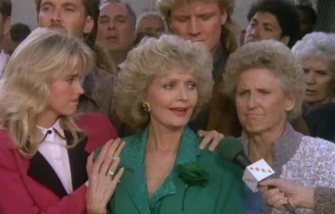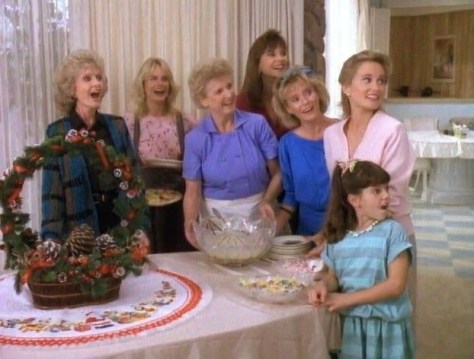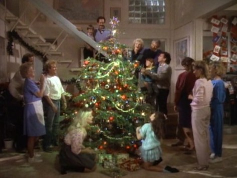 And as far as meeting the barest minimum requirements of a TV series reunion show–let’s see who’s still living, and how badly they look–A Very Brady Christmas delivers. Almost the whole cast is here (an obvious mistake in the female-centric The Brady Brides); they’re in the same house (sorta, since it’s redecorated), and the structure of the story, although far more dramatic than a usual Brady Bunch episode, is pretty close to the accepted formula: the family is in trouble, and the family, together, will work it out, with a little bit of love and laughs. Corny, sure…but it worked (it no doubt helped, too, that competition was weak that night: a blah Stefanie Powers outing on NBC–She Was Marked for Murder–and a repeat of Dolly Parton’s A Smokey Mountain Christmas on ABC).