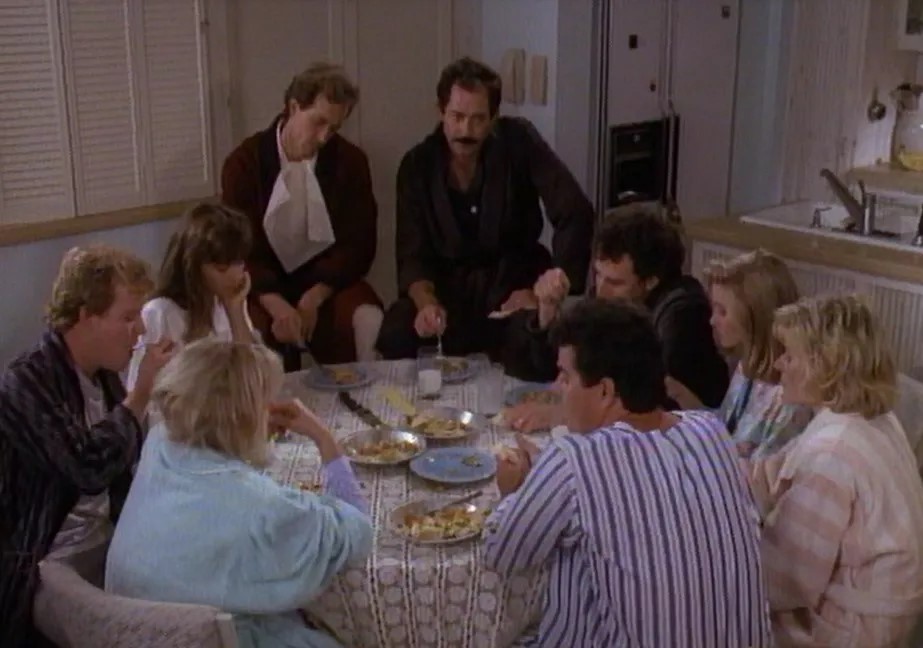 This entirely unfunny misunderstanding gives the screenwriters time to have first Mom and then Dad call their six grown kids and tell them the final resolution: Japan and Greece are out, and an old-fashioned blended family Christmas is in, with everyone getting flown out to their old digs at 4222 Clinton Way, in sunny Hell-A.